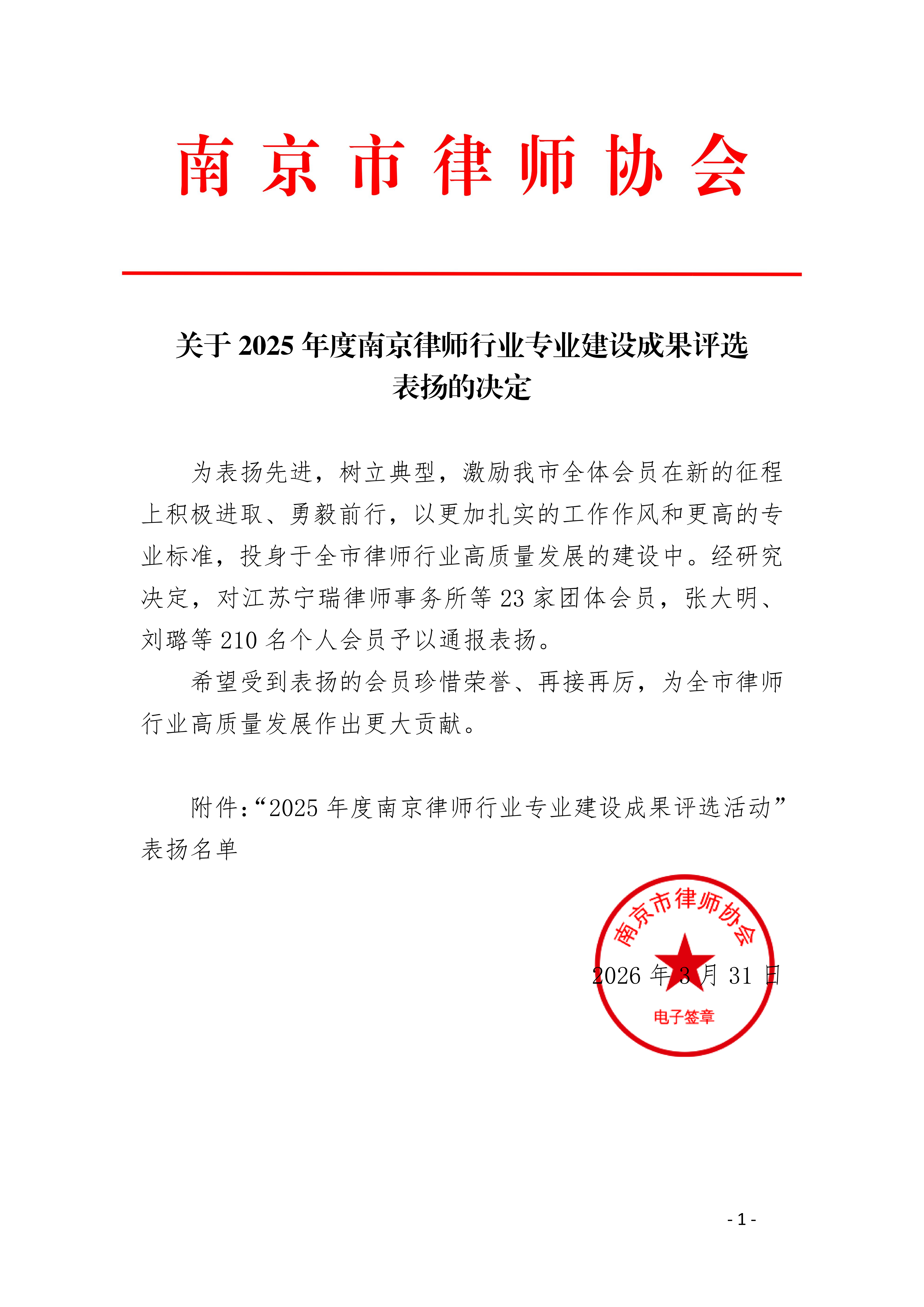 本次表彰,是南京市市律协对天哲所年度综合表现、专业能力与行业贡献的充分肯定,也是对康春雨、揭格、唐凯艳三位律师执业实绩与职业素养的高度认可。